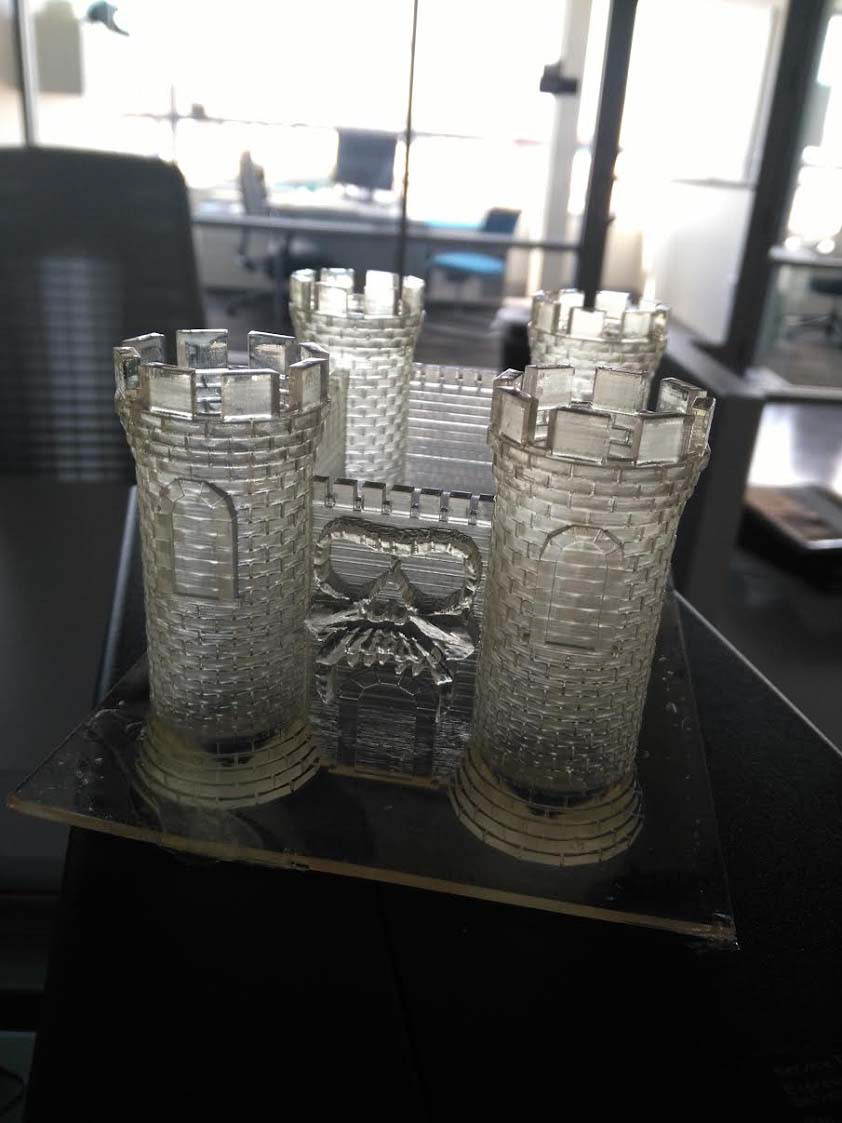 The basic frame work is constructed of an individual brick, duplicated and repeated, and held together my a single piece of masonry (a cube for each straight wall, a pipe for each tower) to ensure a solid print.